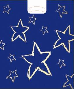 DKT Tragetasche Sternenhimmel LDPE weiß, Stärke 45mµ, mit eingeklebter Blattverstärkung Format: 380 x450 + 2 x 50 mm Bodenfalte Kartoninhalt: 500 Stück
